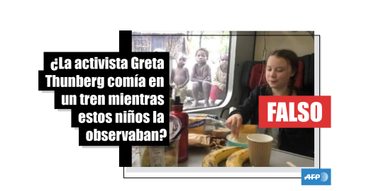 Imagen Publicado el 28/09/2019 La fotografía de Greta comiendo mientras unos niños la miran es un montaje