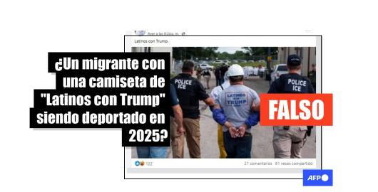 Imagen Migración Publicado el 29/01/2025 Foto de un hombre con una camiseta de “Latinos con Trump” mientras es detenido está alterada