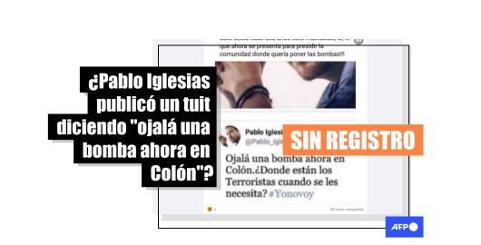 Imagen Publicado el 04/05/2021 No hay registro de que el político español Iglesias tuiteara “ojalá una bomba ahora en Colón”