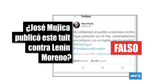 Imagen Publicado el 09/10/2019 No, el expresidente uruguayo José Mujica no llamó “traidor” a Lenín Moreno desde Twitter; en realidad no tiene redes sociales