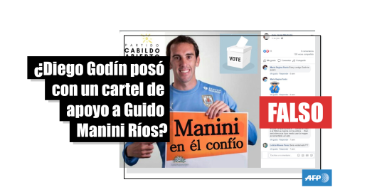 Imagen Publicado el 30/08/2019 No, el futbolista Diego Godín no posó con un cartel de apoyo a este candidato a la Presidencia de Uruguay