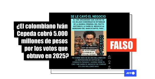Imagen Elecciones Colombia 2026 Publicado el 11/02/2026 Una imagen presenta una cifra exagerada sobre la reposición de votos de Iván Cepeda en Colombia