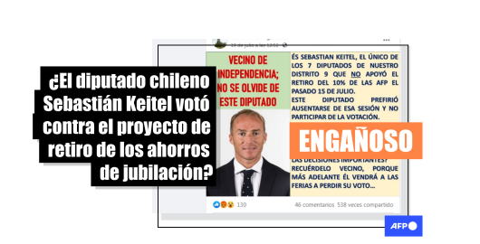 Imagen Covid-19 Publicado el 23/07/2020 El diputado chileno Keitel se inhabilitó para votar sobre los fondos de pensiones por conflicto de interés