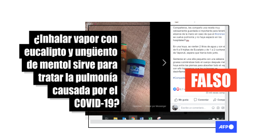 Imagen Covid-19 Publicado el 13/07/2020 Las vaporizaciones de Vick Vaporub y eucalipto no curan ni sirven para tratar el nuevo coronavirus