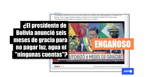 Imagen Covid-19 Publicado el 12/02/2021 El presidente de Bolivia anunció seis meses de gracia para créditos, no al pago de luz y agua