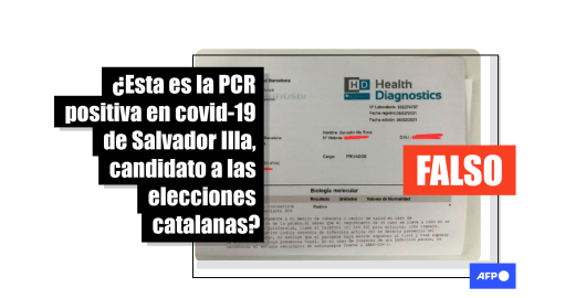 Imagen Covid-19 Publicado el 12/02/2021 La imagen de una PCR positiva del candidato a las elecciones catalanas Salvador Illa es falsa