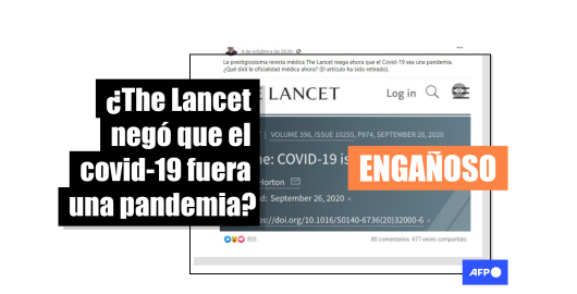 Imagen Covid-19 Publicado el 30/10/2020 La revista The Lancet no negó la pandemia de covid-19; dijo que es un fenómeno más complejo