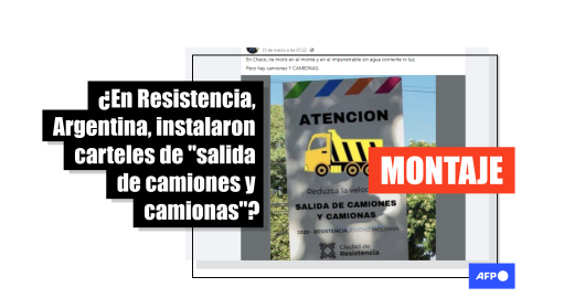 Imagen Publicado el 23/03/2021 El supuesto cartel de “salida de camiones y camionas” en Resistencia, Argentina, es un montaje