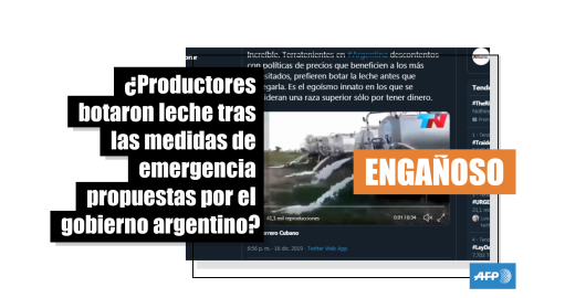 Imagen Publicado el 23/12/2019 El video de camiones derramando leche es de 2015; no está vinculado a las medidas económicas del presidente argentino, Alberto Fernández