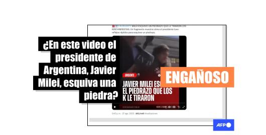 Imagen Elecciones Argentina 2025 Publicado el 29/08/2025 Un video muestra a Javier Milei esquivando una gorra, no una piedra durante una caravana