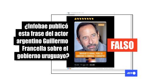 Imagen Publicado el 26/08/2025 Infobae no publicó una gráfica con una supuesta cita de Francella criticando al gobierno uruguayo