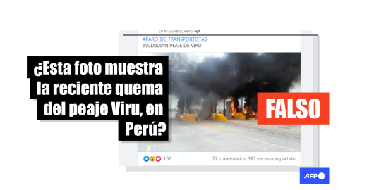 Imagen Publicado el 17/03/2021 La imagen de un peaje en llamas no fue tomada recientemente en Perú; es al menos de 2016