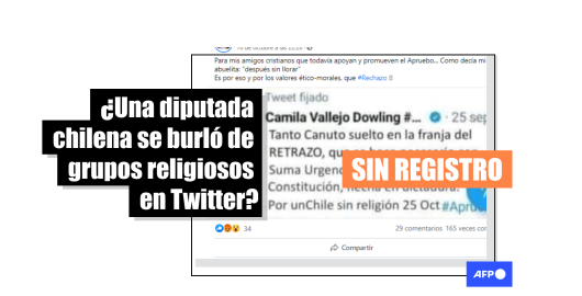 Imagen Publicado el 22/10/2020 No hay registro de que la diputada chilena Vallejo se burlara de evangélicos en un tuit