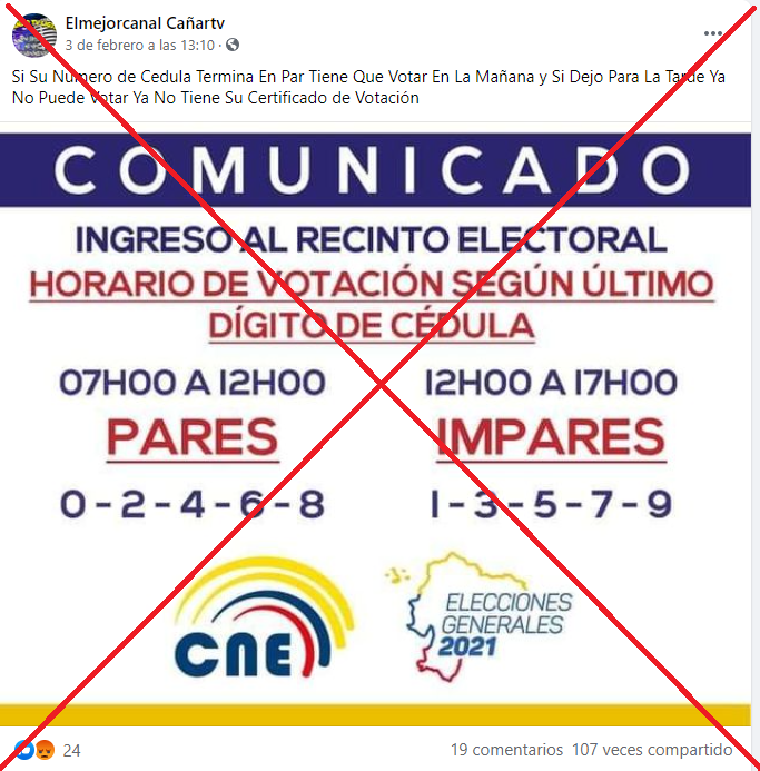 Al ser contactado por AFP Factual, el departamento de comunicaciones del CNE aseguró que “esta es una recomendación del consejo electoral”, pero que si la persona asiste a votar en el horario no recomendado para su número de cédula, puede sufragar igual.