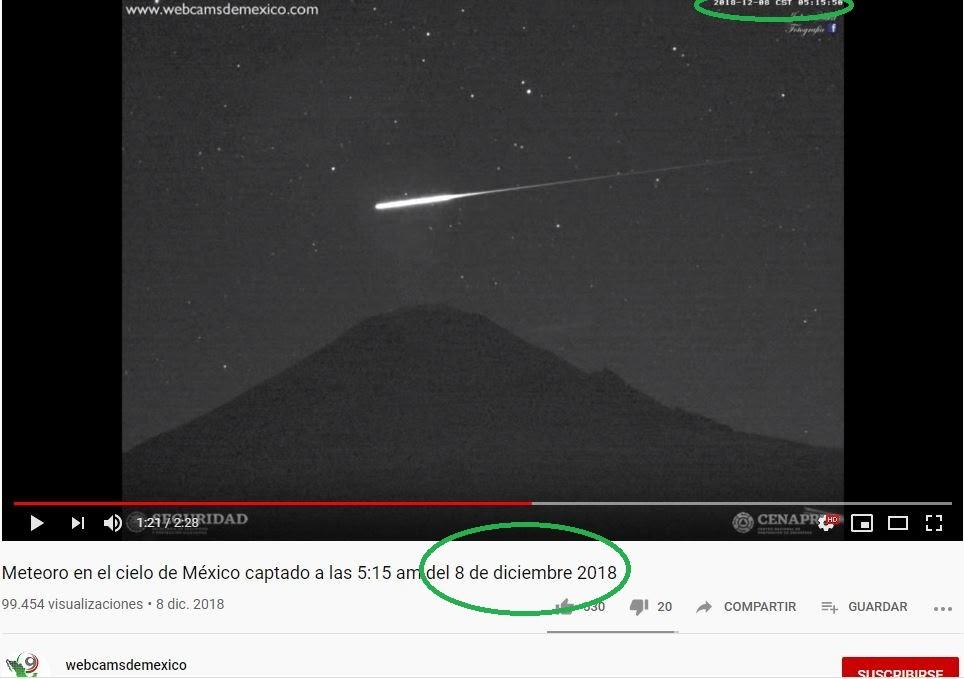 Al hacer una búsqueda inversa, los resultados arrojaron que la fotografía es más antigua y corresponde a un video de Webcams de México del 8 de diciembre de 2018 cuando un meteoro fue captado a las 5h15 .