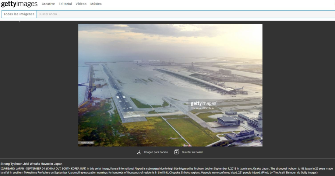 La publicación se ha compartido más de 31.000 veces y la imagen que muestra es real, pero corresponde al Aeropuerto Internacional de Kansai en Japón –diseñado por el arquitecto italiano Renzo Piano–, de acuerdo con la agencia Getty Images.