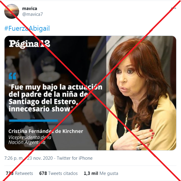 Cristina Kirchner no criticó en un medio argentino al papá de Abigail, una niña enferma de cáncer
