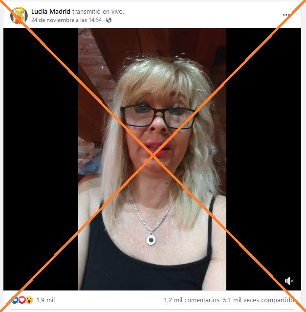 “Quiero que estén informados”, dice en un video publicado en Facebook (1, 2) una médica argentina que se presenta como Karina Sarno, graduada de la Universidad de Buenos Aires (UBA). Pide a los espectadores escuchar y difundir sus palabras y se queja de haber sido censurada en YouTube “por decir la verdad”.