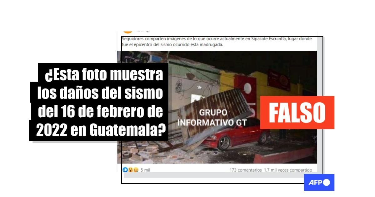 La madrugada del 16 de febrero de 2022 un sismo de magnitud 6,2 sacudió el sur de Guatemala. El epicentro se ubicó en las costas del departamento de Escuintla, a menos de 100 kilómetros de Ciudad de Guatemala. Pero la instantánea que circula en redes sociales no corresponde a ese hecho.
