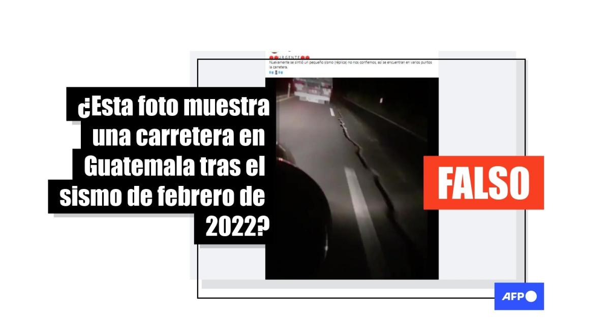 “U R G E N T E Nuevamente se sintió un pequeño sismo (réplica) no nos confiemos, así se encuentran en varios puntos la carretera [emojis de la bandera de Guatemala]”, dice una de las publicaciones en Facebook (1, 2, 3) y Twitter (1, 2, 3) que difunden la imagen.