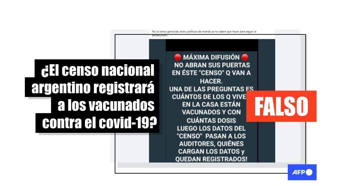 “No hay ninguna pregunta relacionada a la vacunación”, dijo a AFP Factual un portavoz del Indec (Instituto Nacional de Estadística y Censos), organismo encargado del censo.