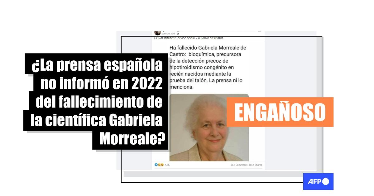 “LA INGRATITUD Y EL OLVIDO SOCIAL Y HUMANO DE SIEMPRE”, dice una de las publicaciones más compartidas en Facebook, de junio de 2018, junto a la fotografía y el mensaje: “Ha fallecido Gabriela Morreale de Castro: bioquímica, precursora de la detección precoz de hipotiroidismo congénito en recién nacidos mediante la prueba del talón. La prensa ni lo menciona”.