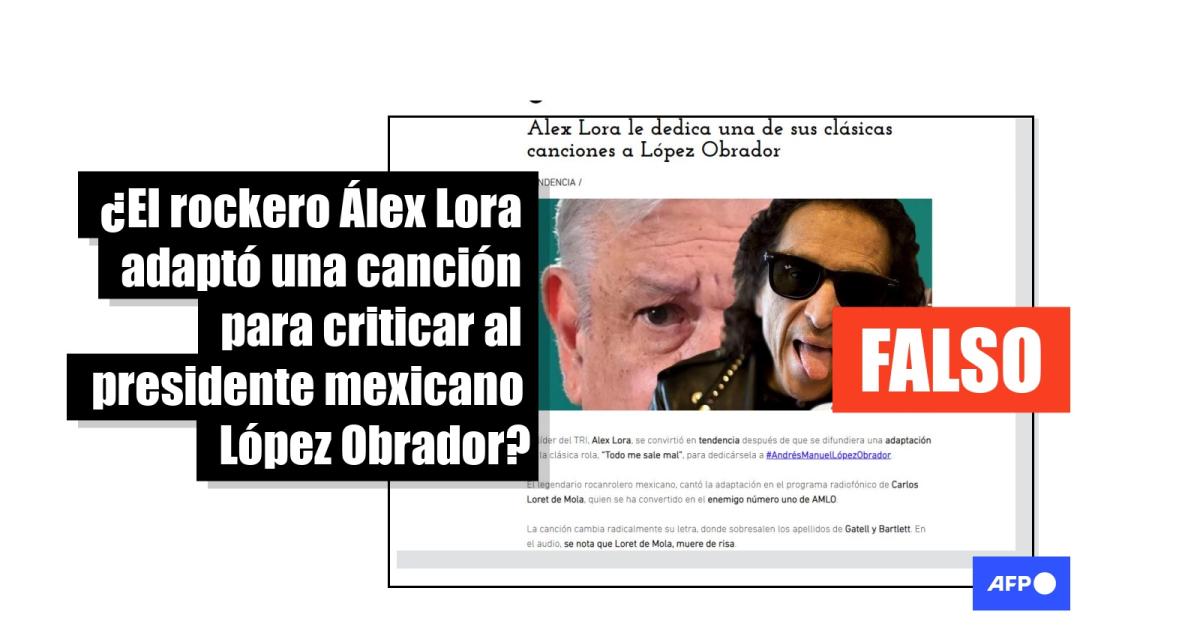 “Alex Lora: a AMLO todo le sale mal”, aseguran publicaciones en Facebook (1, 2) y en Twitter (1) junto a videos que incluyen imágenes del mandatario mexicano y, de fondo, la canción adaptada. En artículos (1, 2) se asegura que el cantante de El Tri le dedicó la melodía a López Obrador.
