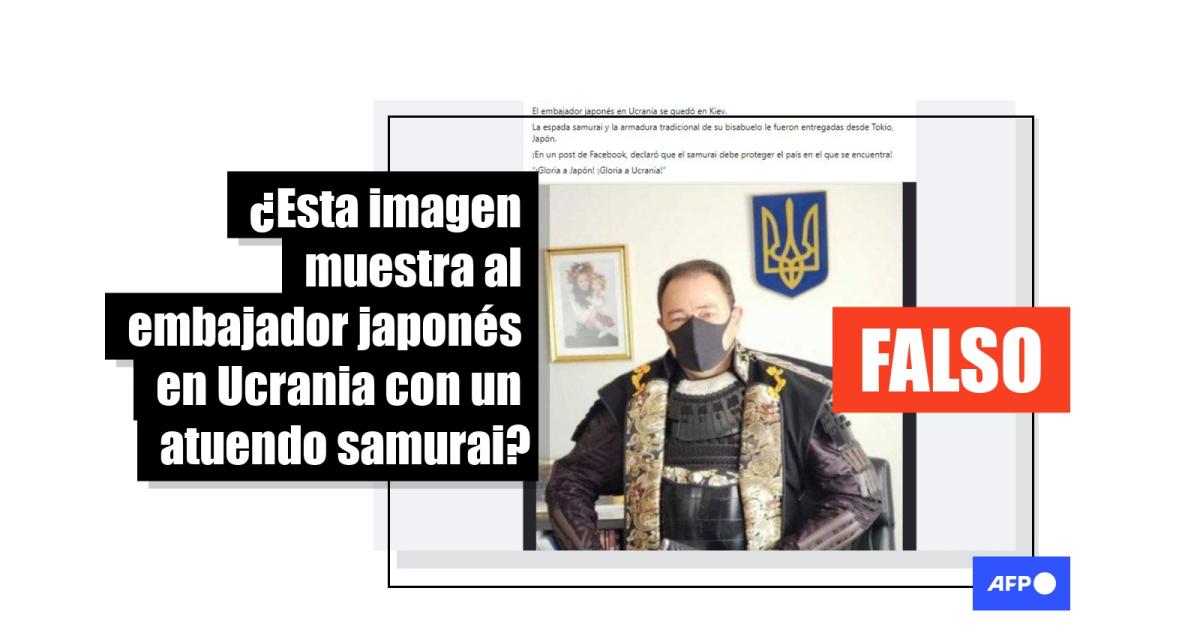 Esta foto muestra al embajador ucraniano en Japón con un atuendo samurai, no a su homólogo en Kiev