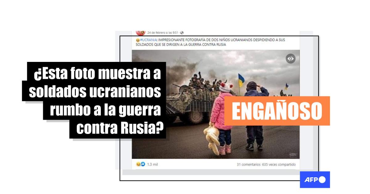 “IMPRESIONANTE FOTOGRAFÍA DE DOS NIÑOS UCRANIANOS DESPIDIENDO A SUS SOLDADOS QUE SE DIRIGEN A LA GUERRA CONTRA RUSIA”, dice una de las publicaciones que comparten la imagen en Facebook (1, 2), Twitter (1, 2) e Instagram.