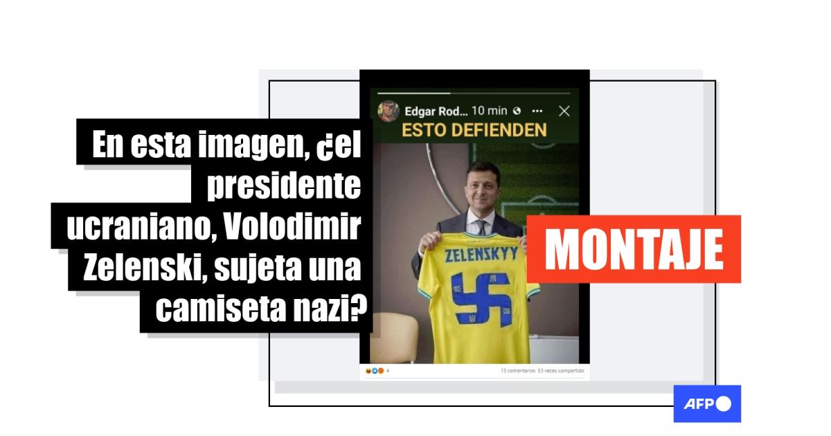 La foto del presidente de Ucrania sosteniendo una camiseta con una esvástica está manipulada