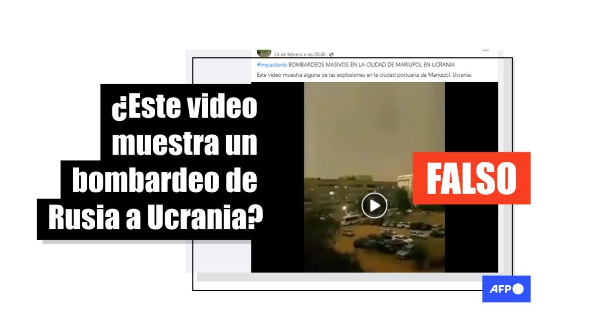 “Primeros ataques en Ucrania. Este video muestra alguna de las explosiones en la ciudad portuaria de Mariupol, Ucrania”, dice una publicación en Facebook (1, 2, 3) que contiene la secuencia. La grabación de 12 segundos también se circula en Twitter (1, 2).