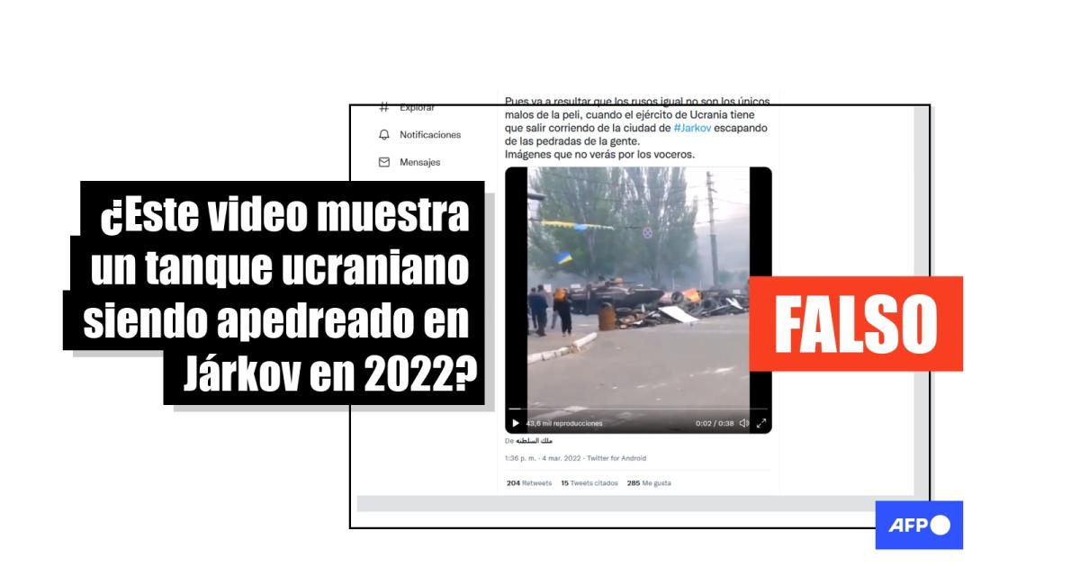 “Por qué los mismos UCRANIANOS lanzan piedras a sus tanques?? Preguntatelo”, se lee en una publicación en Facebook que incluye la secuencia, de cerca de 40 segundos. En Twitter, un usuario señala que el ejército ucraniano ha tenido que “salir corriendo” de la ciudad de Járkov “escapando de las pedradas de la gente”.