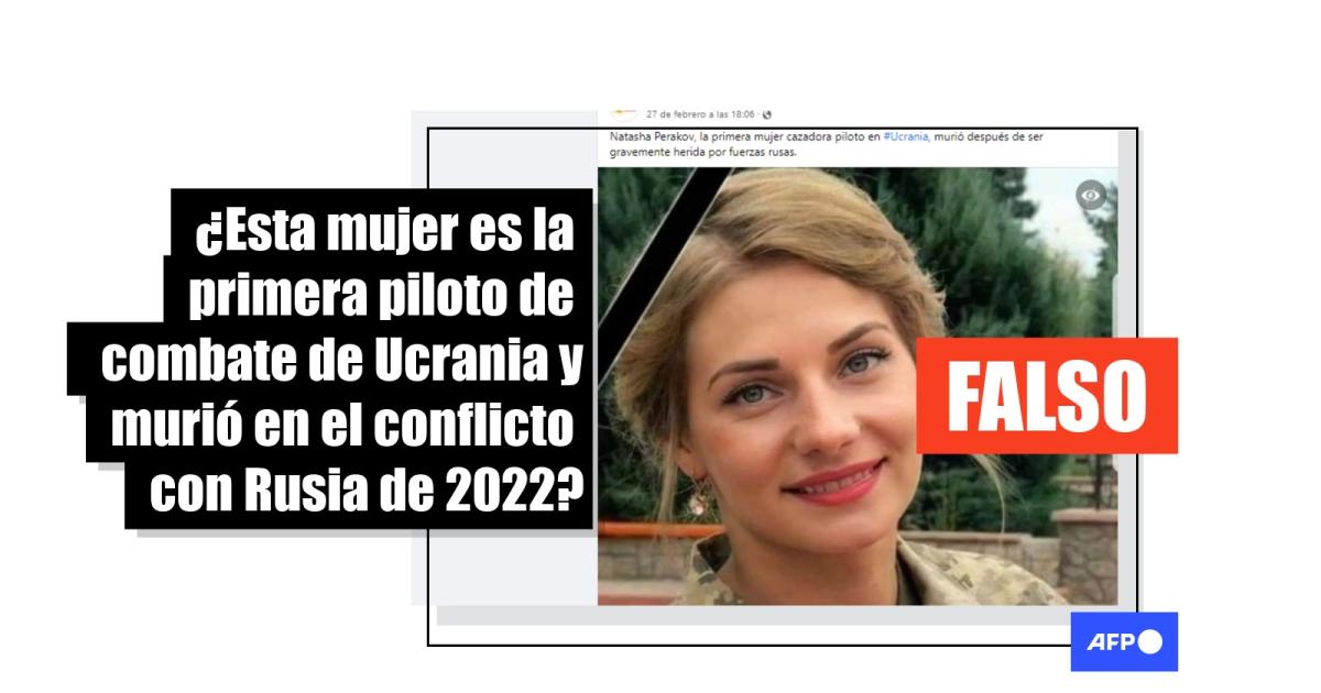 “Natasha Perakov, la primera mujer cazadora piloto en Ucrania, murió después de ser gravemente herida por fuerzas Rusas”, se lee en las publicaciones en Facebook (1, 2, 3) y Twitter (1, 2, 3) ilustradas con la imagen.