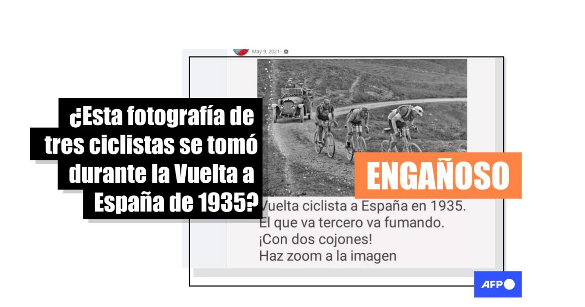 “Vuelta ciclista a España en 1935. El que va tercero va fumando”, dicen las entradas, que seguían circulando en marzo de 2022 en Facebook y que también habían sido compartidas en Instagram y Twitter.