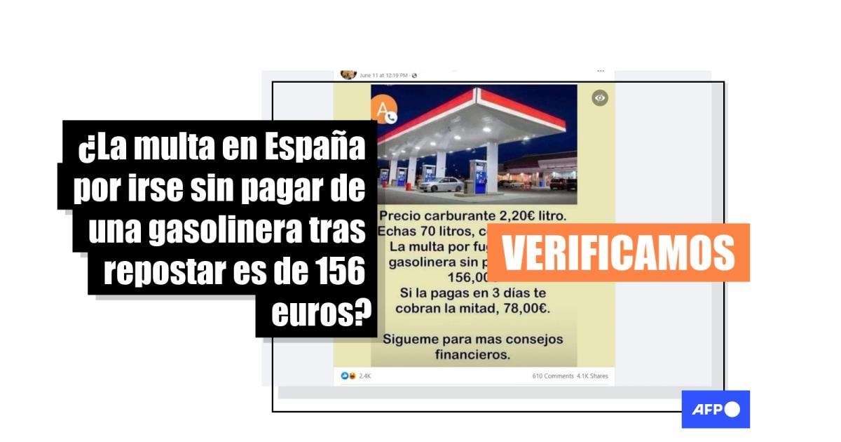 Las publicaciones en Facebook realizan un cálculo matemático, estimando el precio del carburante en 2,20 euros el litro, con lo que llenar un tanque de 70 litros costaría 154 euros. “La multa para fugarse de la gasolinera sin pagar es de 156” euros, dicen las entradas, que añaden: “Si la pagas en 3 días es la mitad, 78,00€”.