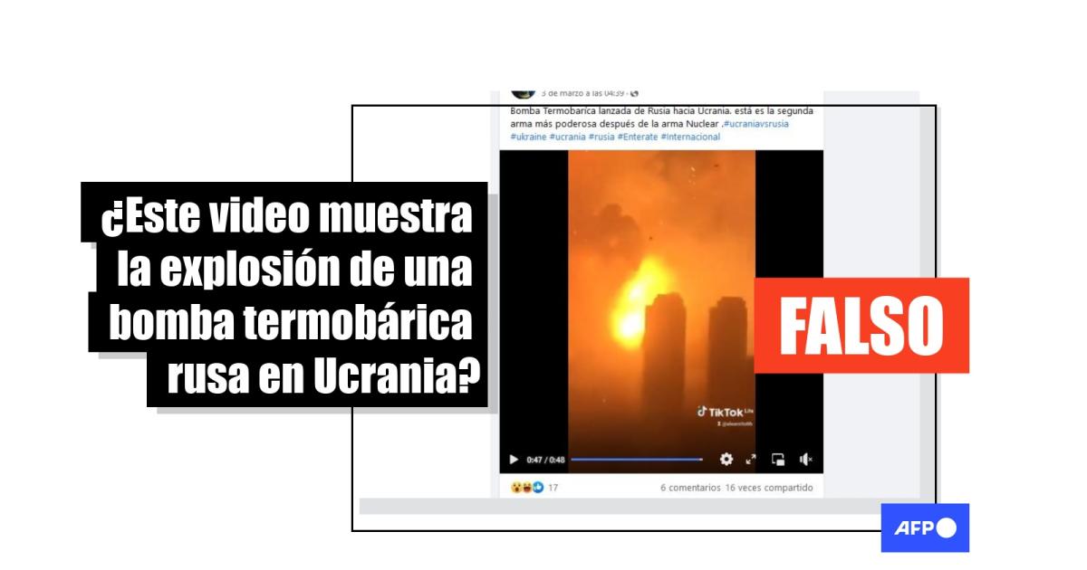 "Bomba Termobaríca lanzada de Rusia hacia Ucrania. Es la segunda arma más poderosa después de la arma Nuclear", se lee en una publicación en Facebook que difunde el video filmado a través de una ventana.