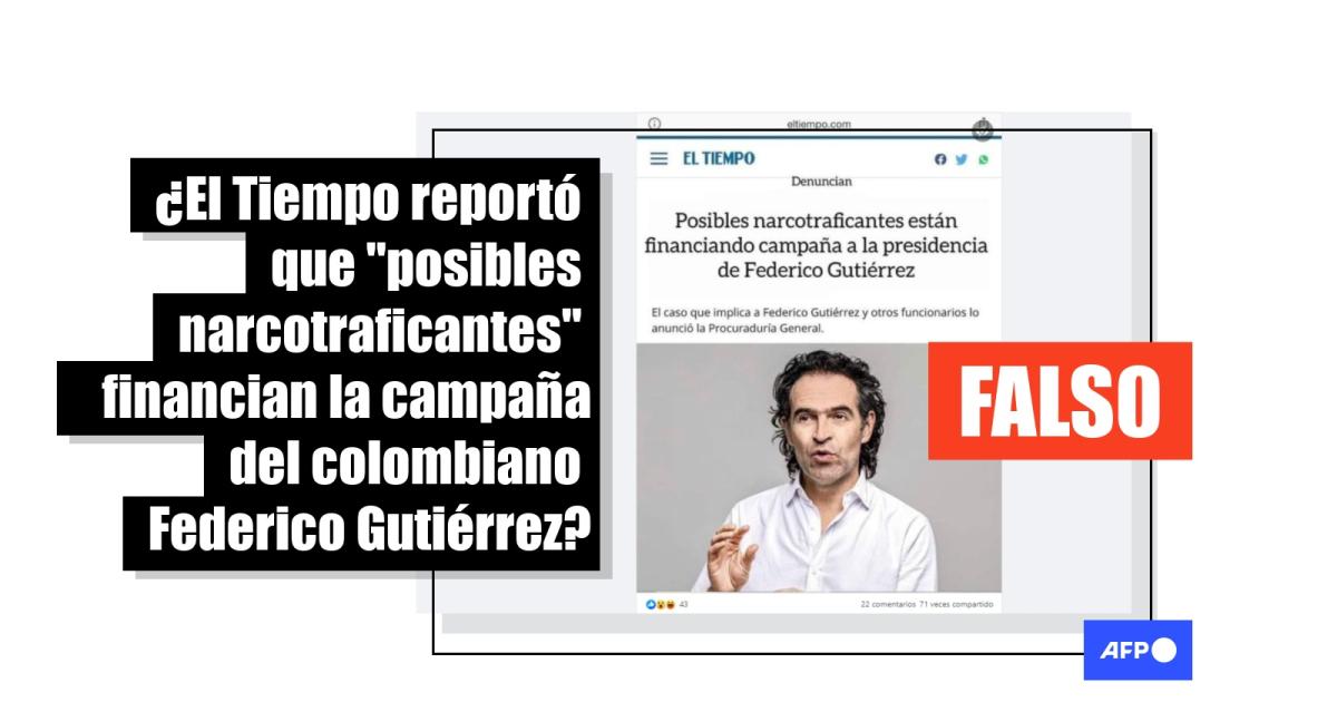 El Tiempo no publicó que el narco financia al candidato presidencial colombiano "Fico" Gutiérrez