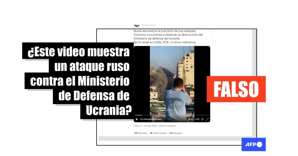 “Rusia demuestra la precisión de sus ataques. Convocó a la prensa a observar la destrucción del ministerio de defensa de Ucrania”, se lee en una entrada en Twitter, que incluye el video, de un minuto de duración. , asegura el mensaje.