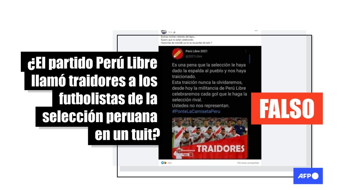 Tuit que acusa de traición a la selección peruana de fútbol no proviene del perfil de Perú Libre
