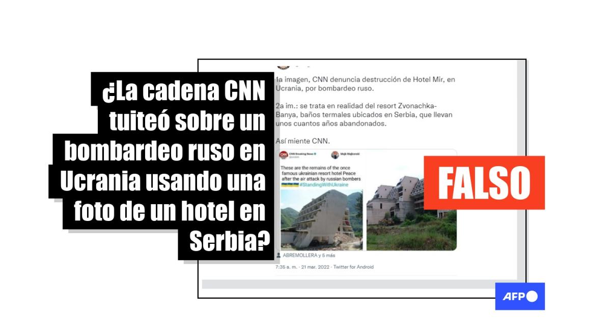 El tuit de CNN sobre un hotel bombardeado en Ucrania con una foto de Serbia es falso