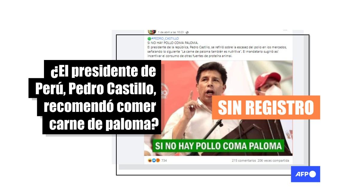 De su lado, la Secretaría General del despacho presidencial negó una supuesta declaración de Castillo sobre la carne de palomas a la AFP.