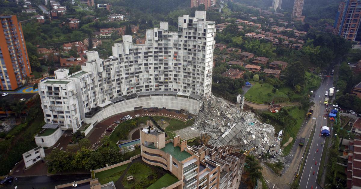 Una de las seis torres del complejo de apartamentos Space, ubicado en el barrio de El Poblado, en el suroeste de Medellín, se desplomó la noche del 12 de octubre de 2013, un día después de que los vecinos llamaran a los servicios de emergencia tras detectar una grieta y un grupo de ingenieros encontrara un problema estructural en una viga.