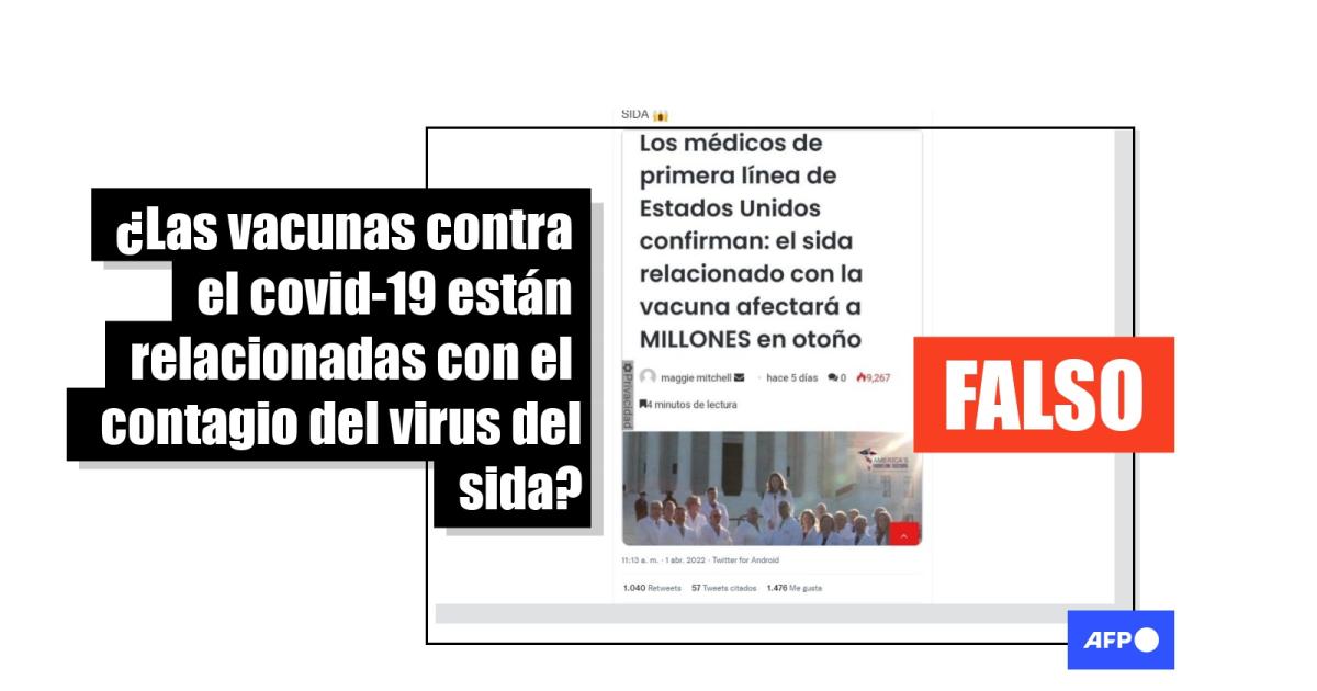 “Los médicos de primera línea de Estados Unidos confirman: el sida relacionado con la vacuna afectará a millones en otoño”, dice un titular compartido en Twitter. Esta publicación en Facebook agrega un enlace a un artículo en inglés. Su traducción al español ha circulado en Telegram, donde lo vieron varios miles de usuarios, y fue copiada en este foro de internet.