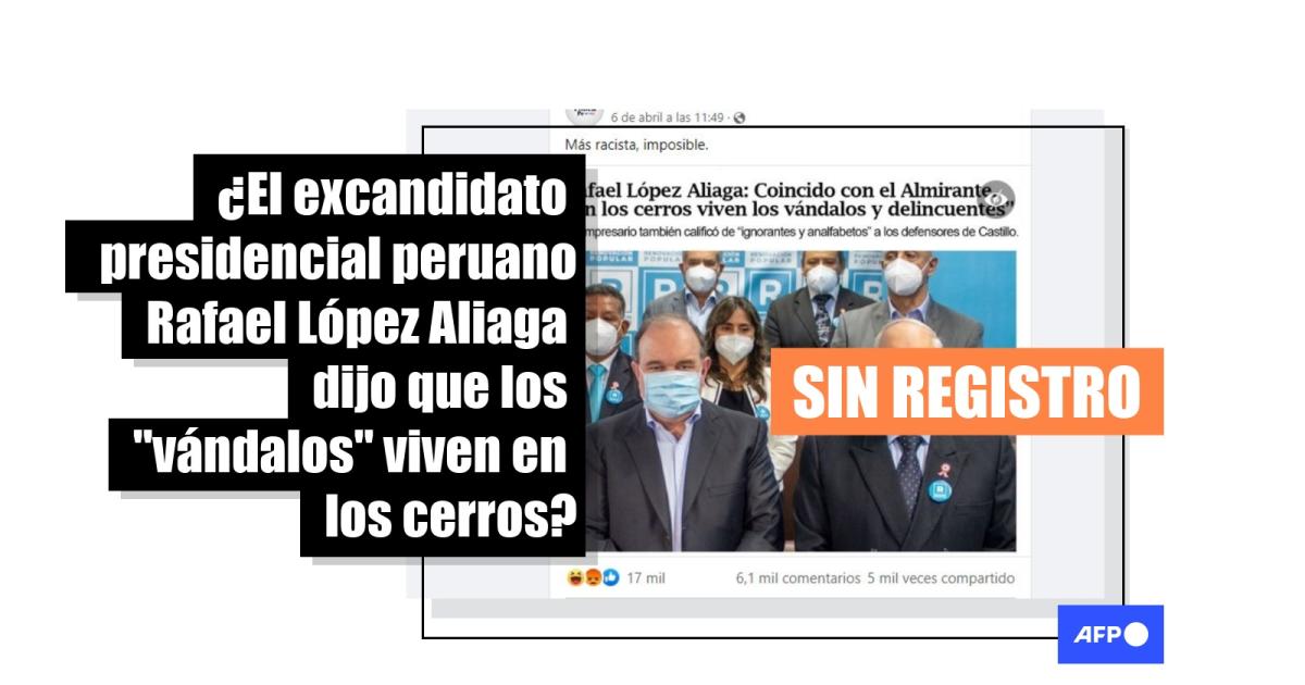 Consultado por la AFP, Rafael López Aliaga dijo: “Es imposible que yo diga eso. Lea mis declaraciones. He expresado que la mejor gente vive en nuestras zonas altas o cerros de Lima. Es difamación”.