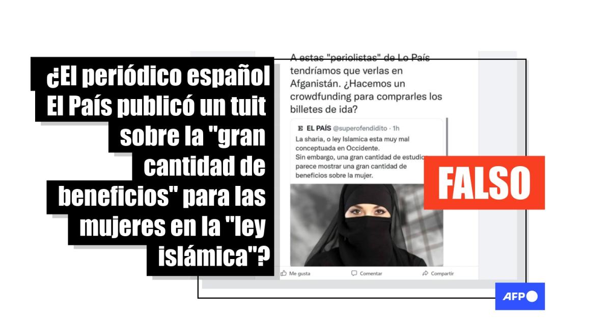 Una búsqueda de la publicación en el perfil verificado de El País en Twitter no arrojó ningún registro de que el medio hubiera lanzado el mensaje el día 17 de abril del 2022 como muestran las capturas. Tampoco aparecen contenidos similares en su página web. No obstante, El País sí publicó artículos sobre las desigualdades de género que sufren las mujeres en países que siguen la sharía o ley islámica.