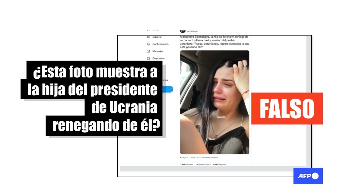 “Aleksandra Zelenskaya, la hija de Zelensky, reniega de su padre. Lo llama nazi y asesino del pueblo ucraniano: 'Rusos, ucranianos, ¡quiero contarles lo que está pasando allí!'”, se lee en un mensaje que circula en Twitter (1, 2) y Facebook (1, 2).