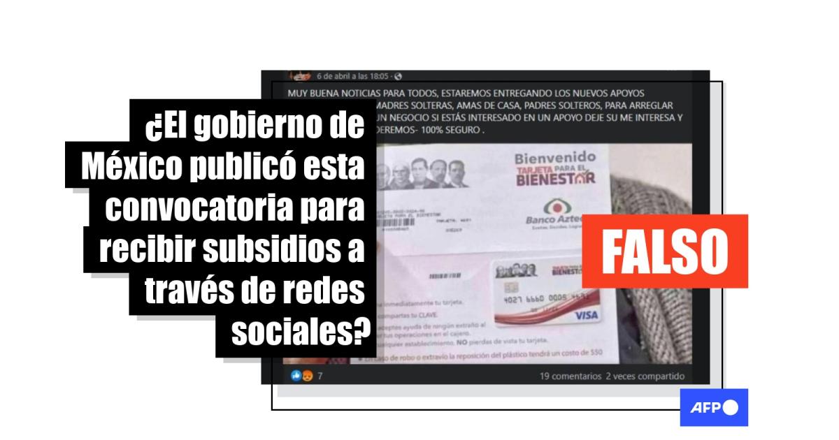 Consultado por el equipo de verificación de la AFP, el departamento de prensa de la Secretaría de Bienestar dijo que estos mensajes “no son oficiales” y no forman parte de sus programas de apoyo económico.