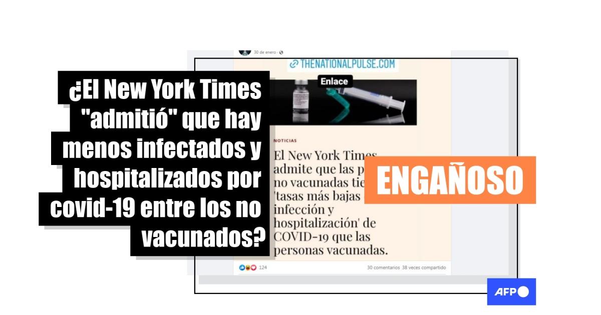 “El New York Times admite que las personas no vacunadas tienen ‘tasas más bajas de infección y hospitalización’ de COVID-19 que las personas vacunadas”, aseguran publicaciones en Facebook (1, 2), Instagram (1, 2), Twitter (1, 2), Telegram (1, 2) y sitios web.