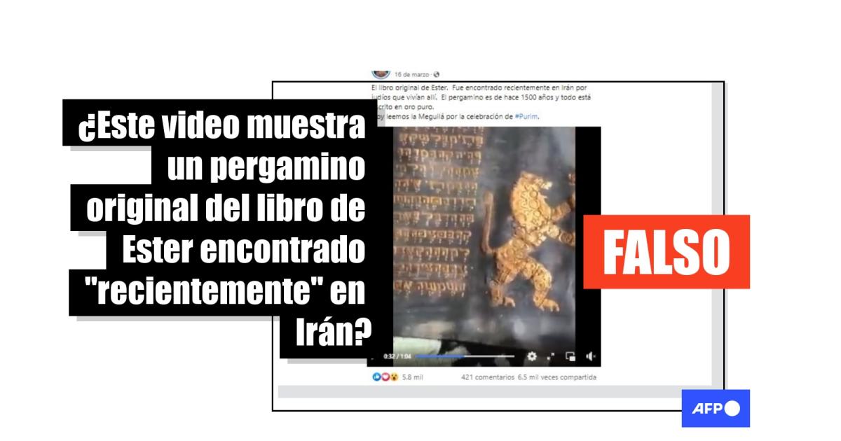“El Libro de Ester original fue encontrado recientemente en Irán por un judío que vivía allí. El pergamino es de hace 1500 años. Todo está escrito en oro puro”, dicen publicaciones en Facebook (1, 2), Twitter y YouTube.