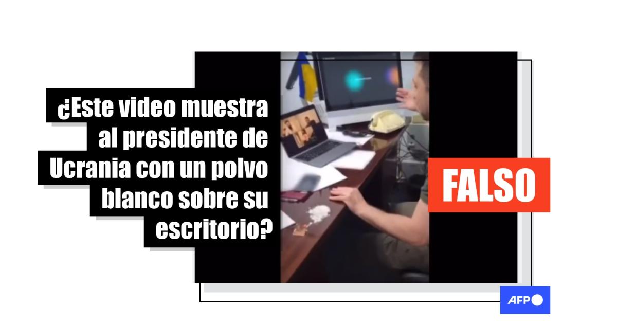 Es un montaje el video en que se ve un polvo blanco sobre la mesa de Volodimir Zelenski